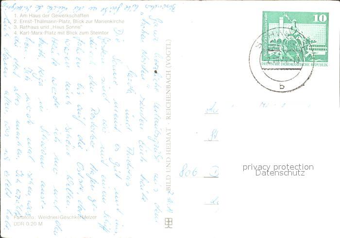 72358399 alte Postkarte ROSTOCK CITY Haus der Gewerkschaften Thaelmann Platz Marienkirche Rathaus Haus Sonne Karl Marx Platz Steintor postalisch gelaufen Erhaltung siehe scans KatCode: 11110013003000