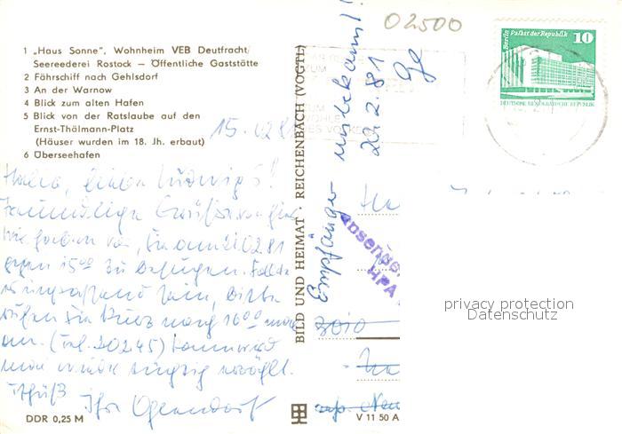 72917345 alte Postkarte ROSTOCK CITY Haus Sonne Warnow Hafen Ernst-Thaelmann-Platz postalisch gelaufen Erhaltung siehe scans [PaolaD17] KatCode: 11110013003000