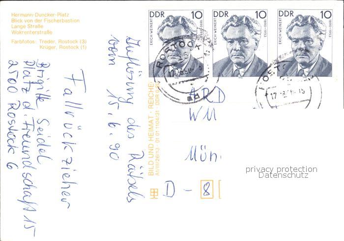 72156548 alte Postkarte ROSTOCK CITY Hermann Duncker Platz Fischerbastion Lange Str Wokrenterstr postalisch gelaufen Erhaltung siehe scans KatCode: 11110013003000