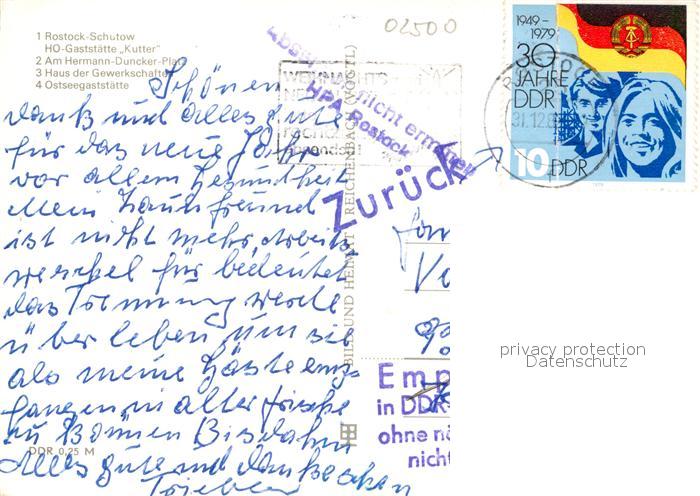 72939087 alte Postkarte ROSTOCK CITY HO-Gaststaette Kutter Hermann-Duncker-Platz postalisch gelaufen Erhaltung siehe scans [NatalD47] KatCode: 11110013003000