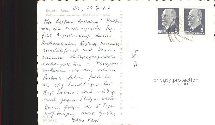 72032799 alte Postkarte ROSTOCK CITY Hochhaus postalisch gelaufen Erhaltung siehe scans KatCode: 11110013003000