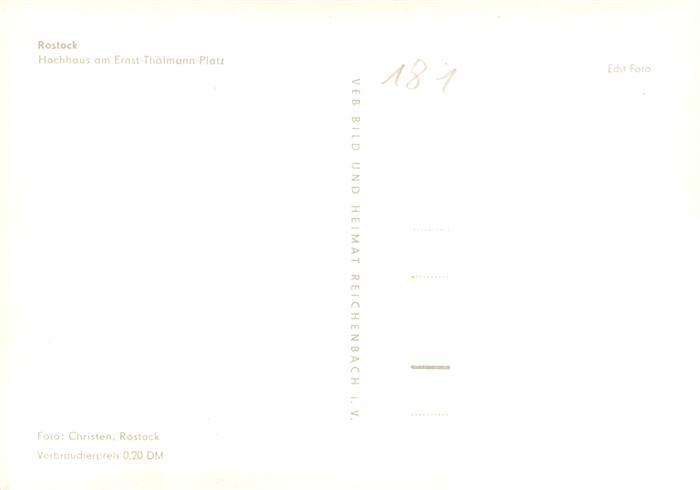 73871304 ROSTOCK CITY Hochhaus am Ernst Thaelmann Platz postalisch nicht gelaufen Erhaltung siehe scans [FriedD77] Frie Katcode 11110013003000