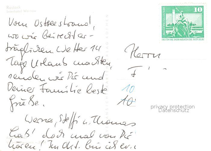 73070069 alte Postkarte ROSTOCK CITY Hotel Warnow postalisch gelaufen Erhaltung siehe scans [KathaD81] KatCode: 11110013003000
