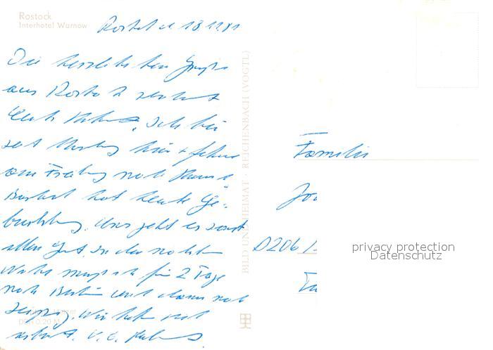 73012250 alte Postkarte ROSTOCK CITY Hotel Warnow postalisch gelaufen Erhaltung siehe scans [KathaD81] KatCode: 11110013003000