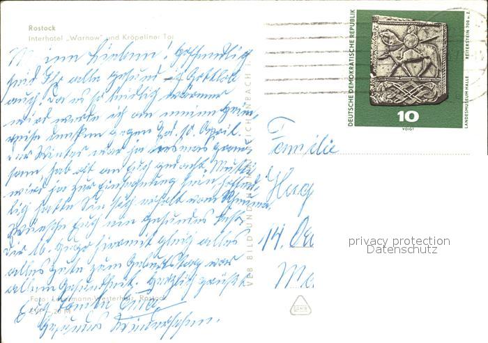 72007166 alte Postkarte ROSTOCK CITY Interhohtel Warnow mit Kroepeliner Tor postalisch gelaufen Erhaltung siehe scans KatCode: 11110013003000