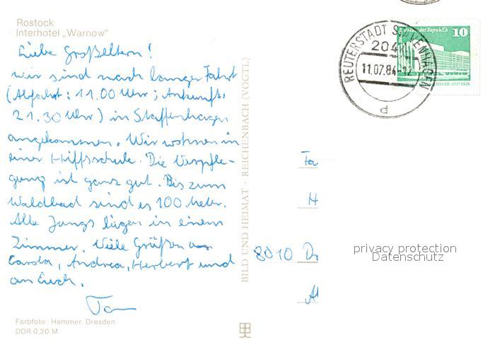 73115977 alte Postkarte ROSTOCK CITY Interhotel Warnow postalisch gelaufen Erhaltung siehe scans [KathaD81] KatCode: 11110013003000