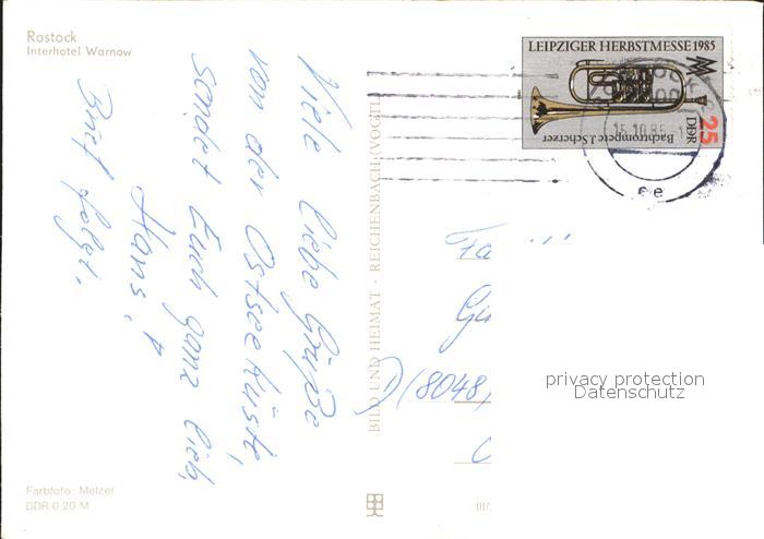 71934337 alte Postkarte ROSTOCK CITY Interhotel Warnow postalisch gelaufen Erhaltung siehe scans KatCode: 11110013003000