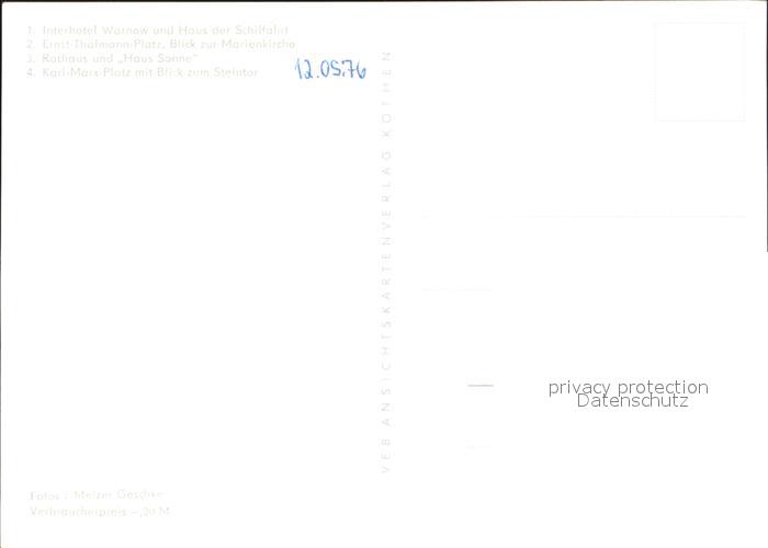 72333130 ROSTOCK CITY Interhotel Warnow Haus der Schiffahrt Ernst Thaelmann Platz Marienkirche postalisch nicht gelaufen Erhaltung siehe scans KatCode: 11110013003000