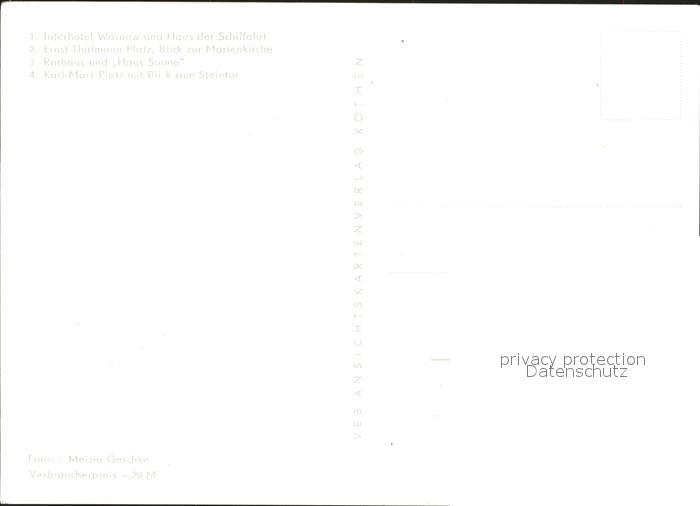 72353545 ROSTOCK CITY Interhotel Warnow Haus Schiffahrt Karl-Marx-Platz Rathaus postalisch nicht gelaufen Erhaltung siehe scans KatCode: 11110013003000