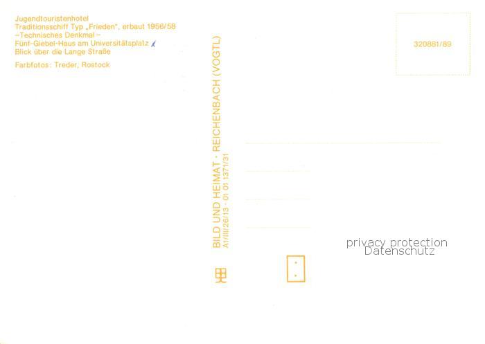 73781145 ROSTOCK CITY Jugendtouristenhotel Traditionsschiff Typ Frieden Technisches Denkmal Fuenf-Giebel-Haus Universitaetsplatz Lange Strasse Wappen postalisch nicht gelaufen Erhaltung siehe scans [FriedD77] Frie Katcode 11110013003000
