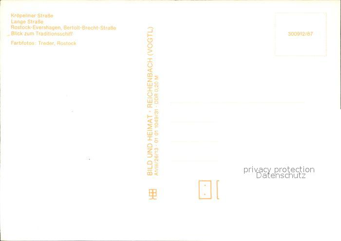 72585635 ROSTOCK CITY Kroepeliner-Strasse Lange-Strasse Evershagen Traditionsschiff postalisch nicht gelaufen Erhaltung siehe scans [LiesaD40] KatCode: 11110013003000