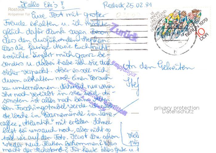 72960974 alte Postkarte ROSTOCK CITY Kroepeliner Tor im Winter postalisch gelaufen Erhaltung siehe scans [FriedD77] KatCode: 11110013003000
