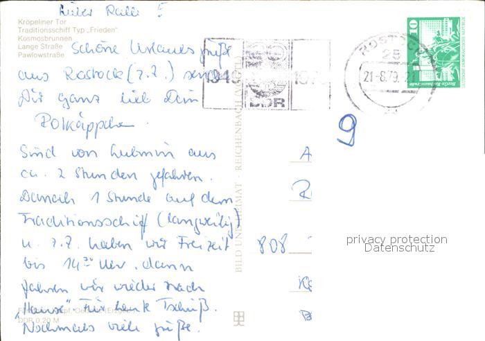 72410356 alte Postkarte ROSTOCK CITY Kroepeliner Tor Kosmosbrunnen Lange-Strasse Pawlowstrasse postalisch gelaufen Erhaltung siehe scans KatCode: 11110013003000