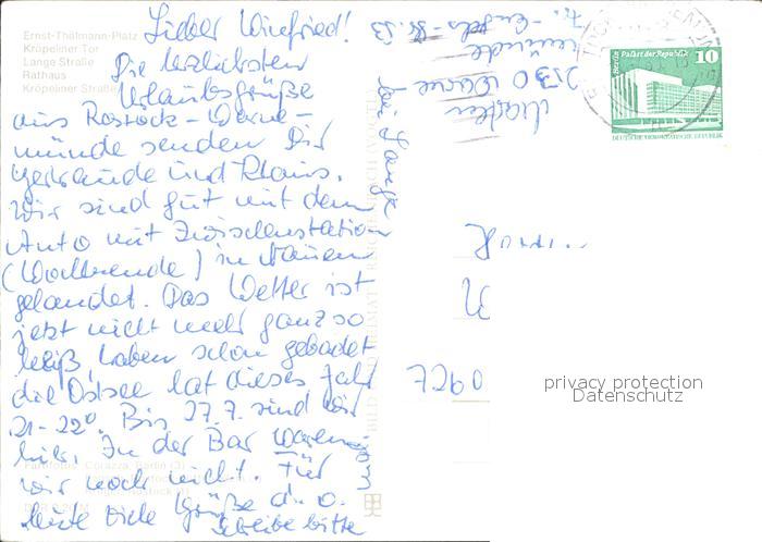 72322974 alte Postkarte ROSTOCK CITY Kroepeliner-Tor Lange-Strasse Rathaus postalisch gelaufen Erhaltung siehe scans KatCode: 11110013003000