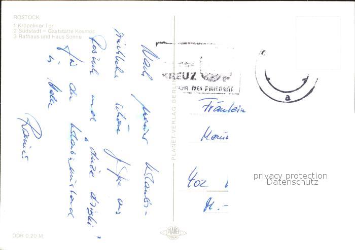 72326641 alte Postkarte ROSTOCK CITY Kroepeliner Tor Suedstadt Gaststaette Kosmos Rathaus Haus Sonne postalisch gelaufen Erhaltung siehe scans KatCode: 11110013003000