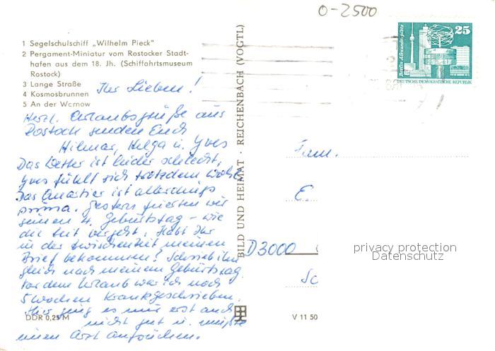 73050615 alte Postkarte ROSTOCK CITY Lange Strasse Kosmosbrunnen Segelschulschiff Wilhelm Pieck postalisch gelaufen Erhaltung siehe scans [PaolaD17] KatCode: 11110013003000