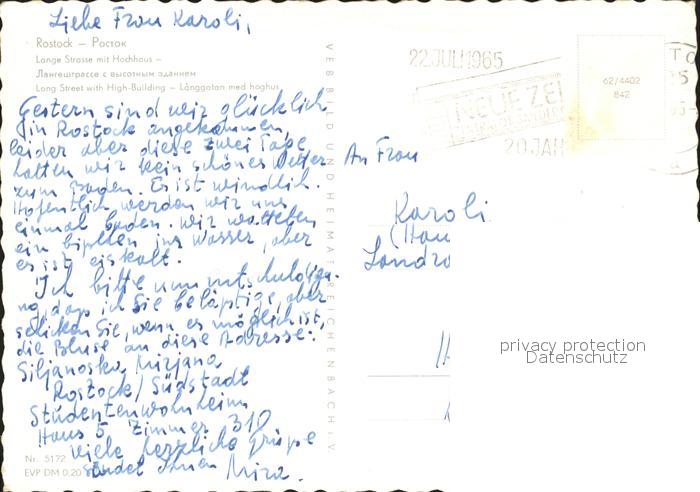 72328068 alte Postkarte ROSTOCK CITY Lange-Strasse mit Hochhaus postalisch gelaufen Erhaltung siehe scans KatCode: 11110013003000