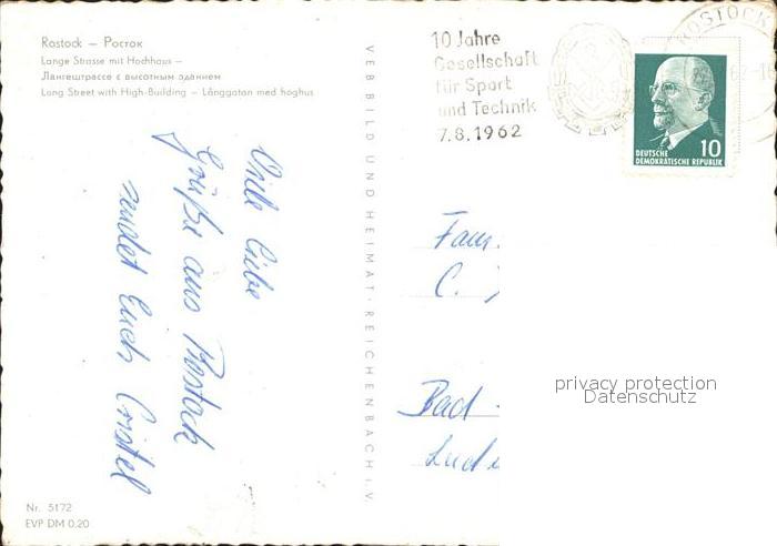 72126095 alte Postkarte ROSTOCK CITY Lange Strasse mit Hochhaus postalisch gelaufen Erhaltung siehe scans KatCode: 11110013003000