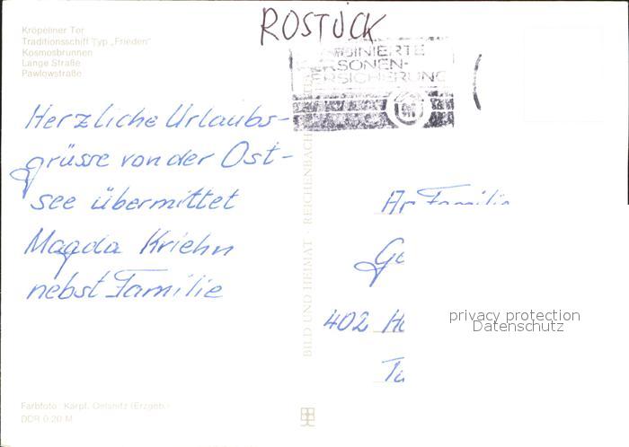 72328050 alte Postkarte ROSTOCK CITY Lange-Strasse Pawlowstrasse Hafen Kroepeliner-Tor postalisch gelaufen Erhaltung siehe scans KatCode: 11110013003000
