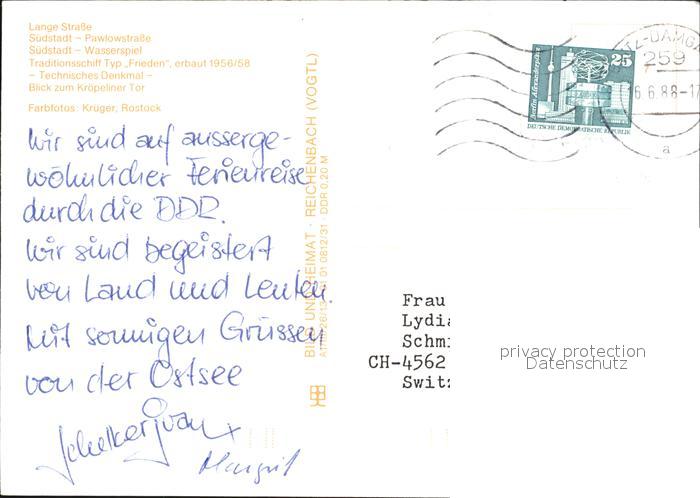 72585669 alte Postkarte ROSTOCK CITY Lange-Strasse Suedstadt Pawlowstrasse Traditionsschiff Frieden postalisch gelaufen Erhaltung siehe scans [LiesaD40] KatCode: 11110013003000