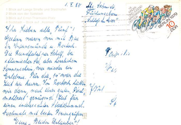 73892348 ROSTOCK CITY Lange Strasse und Stadthafen Suedstadt Ernst Thaelmann Platz Kosmos Gaststaette postalisch gelaufen Erhaltung siehe scans [WerneD78] alte Postkarte Wern Katcode 11110013003000