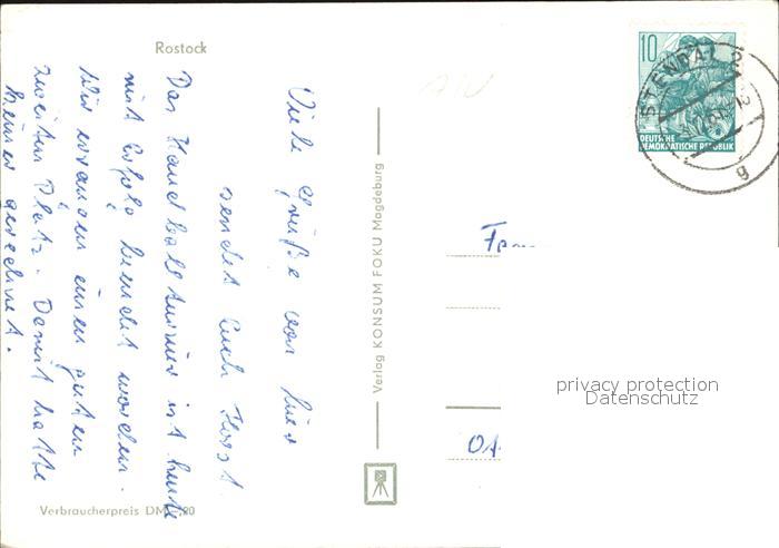 72432247 alte Postkarte ROSTOCK CITY Langestrasse Museum Rathaus Hafen postalisch gelaufen Erhaltung siehe scans KatCode: 11110013003000