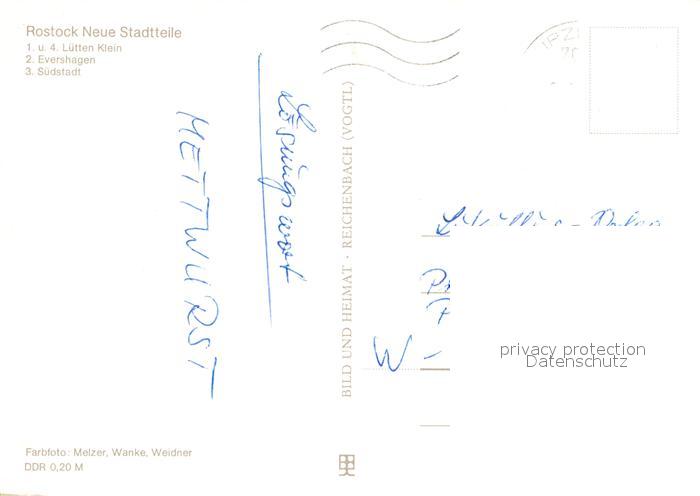 73012241 alte Postkarte ROSTOCK CITY Luetten Klein Evershagen Suedstadt postalisch gelaufen Erhaltung siehe scans [KathaD81] KatCode: 11110013003000