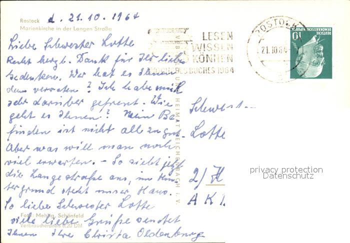 72392224 alte Postkarte ROSTOCK CITY Marienkirche in der Langen Strasse postalisch gelaufen Erhaltung siehe scans KatCode: 11110013003000