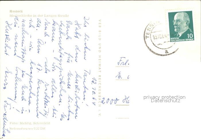72128923 alte Postkarte ROSTOCK CITY Marienkirche Lange Strasse postalisch gelaufen Erhaltung siehe scans KatCode: 11110013003000