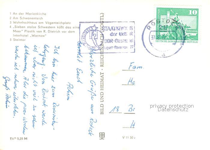 73044955 alte Postkarte ROSTOCK CITY Marienkirche Schwanenteich Voegenteichplatz Plastik Sieben stolze Schwestern Steintor postalisch gelaufen Erhaltung siehe scans [WerneD78] KatCode: 11110013003000