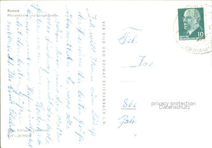 72162701 alte Postkarte ROSTOCK CITY Marienkirche und Langestrasse postalisch gelaufen Erhaltung siehe scans KatCode: 11110013003000