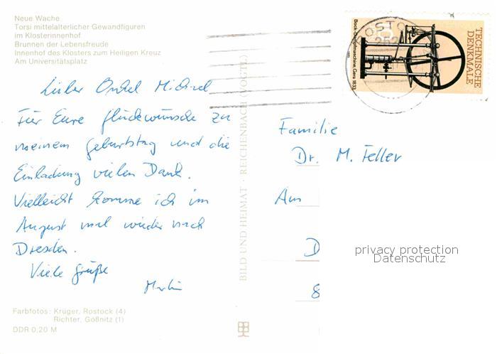 72646102 alte Postkarte ROSTOCK CITY Neue Wache Torsi Klosterinnenhof Brunnen Universitaetsplatz postalisch gelaufen Erhaltung siehe scans [FriedD77] KatCode: 11110013003000