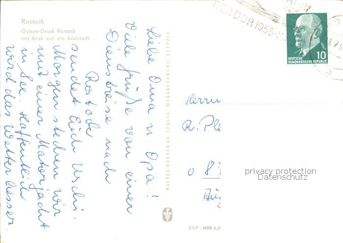 72257749 alte Postkarte ROSTOCK CITY Ostsee Druck Verlag Suedstadt postalisch gelaufen Erhaltung siehe scans KatCode: 11110013003000