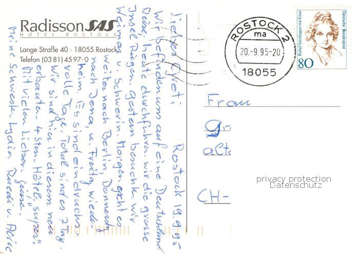72940120 alte Postkarte ROSTOCK CITY Radisson Hotel Marktplatz postalisch gelaufen Erhaltung siehe scans [KathaD81] KatCode: 11110013003000
