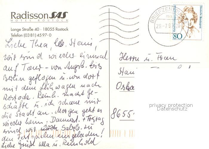 73723023 ROSTOCK CITY Radisson Hotel Rostock Hafen Wasserspiele Marktplatz postalisch gelaufen Erhaltung siehe scans [WerneD78] alte Postkarte Wern Katcode 11110013003000