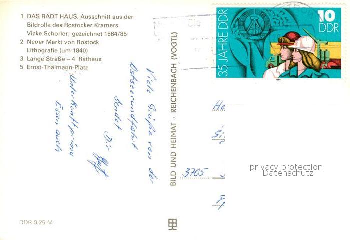 73066562 alte Postkarte ROSTOCK CITY Radt Haus Neuer Markt Lithografie Lange Str Rathaus Ernst Thaelmann Platz postalisch gelaufen Erhaltung siehe scans [WerneD78] KatCode: 11110013003000