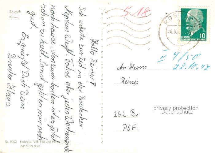 72616729 alte Postkarte ROSTOCK CITY Rathaus postalisch gelaufen Erhaltung siehe scans [WerneD78] KatCode: 11110013003000