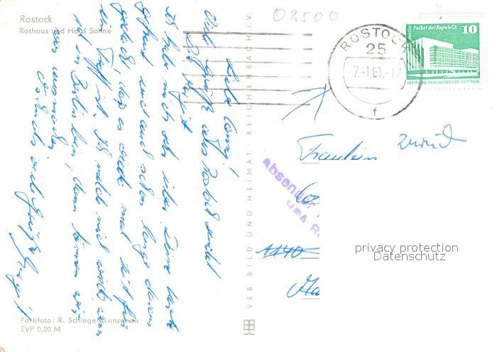 72961037 alte Postkarte ROSTOCK CITY Rathaus Haus Sonne postalisch gelaufen Erhaltung siehe scans [FriedD77] KatCode: 11110013003000