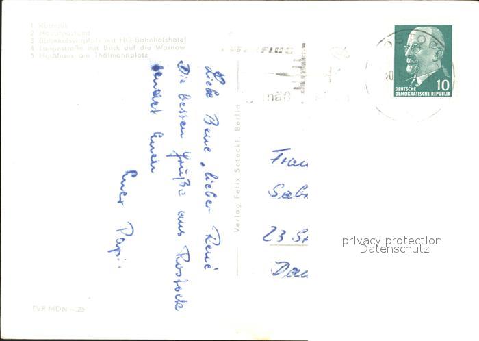 72342522 alte Postkarte ROSTOCK CITY Rathaus Postamt Bahnhofsvorplatz HO Hotel Langestrasse Warnow Hochhaus Thaelmannplatz postalisch gelaufen Erhaltung siehe scans KatCode: 11110013003000