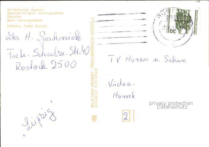 72156547 alte Postkarte ROSTOCK CITY Restaurant Kosmos Sport und Kongresshalle Total postalisch gelaufen Erhaltung siehe scans KatCode: 11110013003000