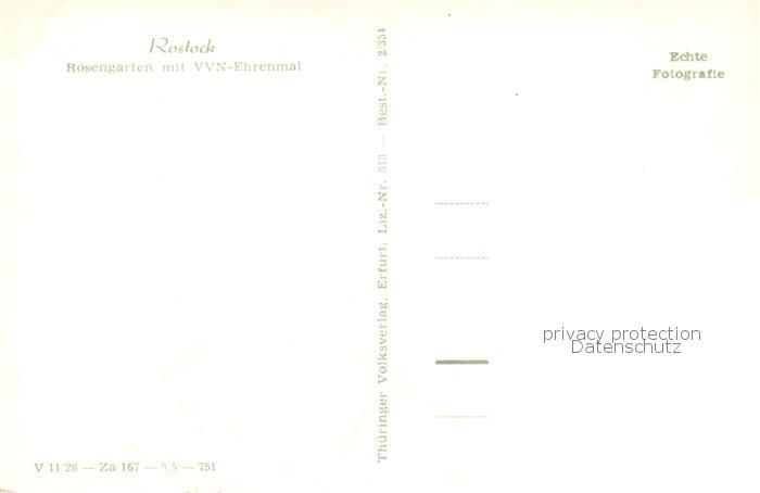 73805553 ROSTOCK CITY Rosengarten mit VVN Ehrenmal postalisch nicht gelaufen Erhaltung siehe scans [WerneD78] Wern Katcode 11110013003000