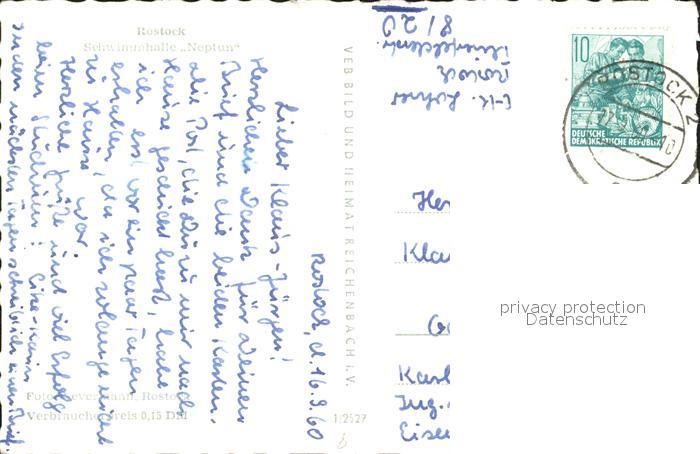 72009712 alte Postkarte ROSTOCK CITY Schwimmhalle Neptun postalisch gelaufen Erhaltung siehe scans KatCode: 11110013003000