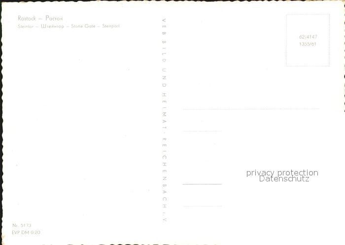 72609434 ROSTOCK CITY Steintor postalisch nicht gelaufen Erhaltung siehe scans [AndreD76] KatCode: 11110013003000