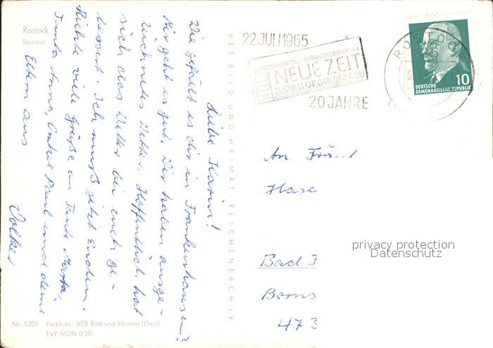 72358392 alte Postkarte ROSTOCK CITY Steintor postalisch gelaufen Erhaltung siehe scans KatCode: 11110013003000