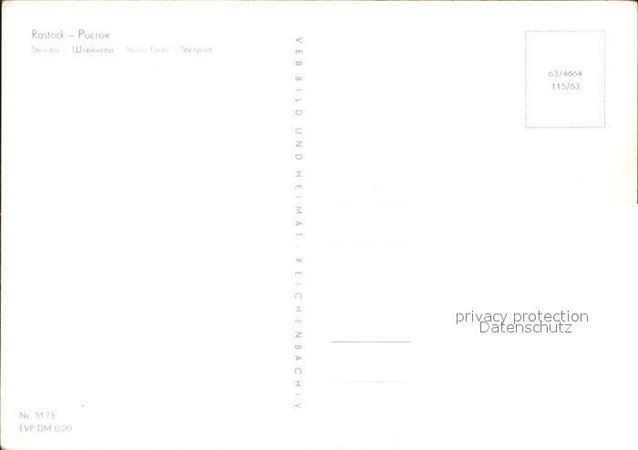 72135918 ROSTOCK CITY Steintor postalisch nicht gelaufen Erhaltung siehe scans KatCode: 11110013003000
