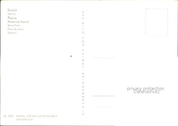 72048375 ROSTOCK CITY Steintor postalisch nicht gelaufen Erhaltung siehe scans KatCode: 11110013003000