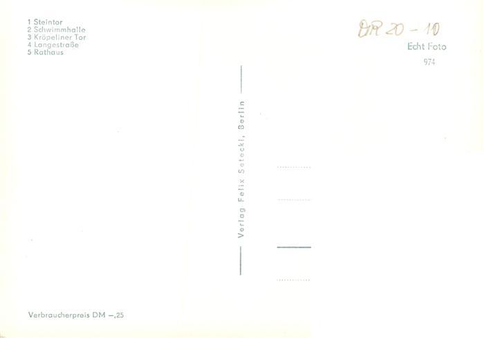 73902090 ROSTOCK CITY Steintor Schwimmhalle Kroepeliner Tor Langestrasse Rathaus postalisch nicht gelaufen Erhaltung siehe scans [FriedD77] Frie Katcode 11110013003000