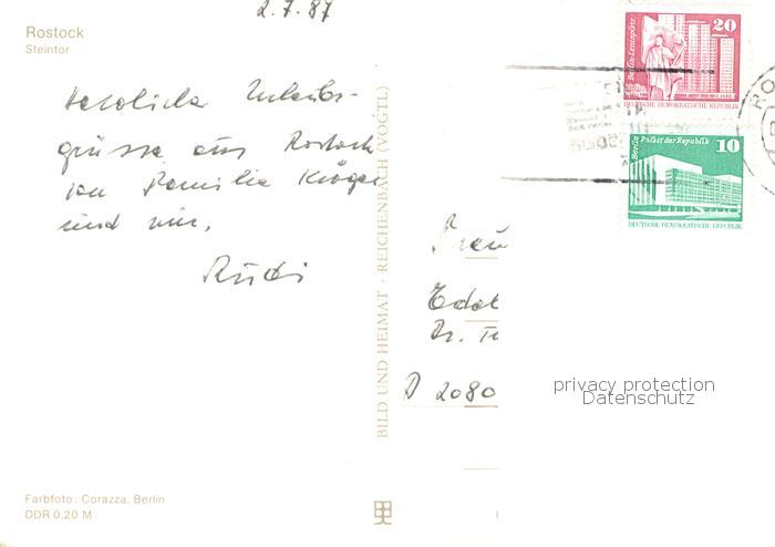73781135 ROSTOCK CITY Steintor Strassenbahn postalisch gelaufen Erhaltung siehe scans [FriedD77] alte Postkarte Frie Katcode 11110013003000