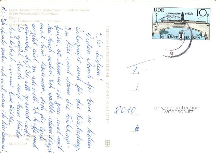 72358404 alte Postkarte ROSTOCK CITY Thaelmann Platz Giebelhaeuser Marienkirche Gr Wasserstrasse Steintor Rathaus Kerkhofhaus postalisch gelaufen Erhaltung siehe scans KatCode: 11110013003000