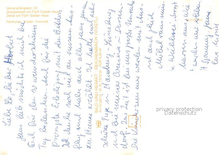 73655137 ROSTOCK CITY Universitaetsplatz Glockenspiel am Fuenf-Giebel-Haus postalisch nicht gelaufen Erhaltung siehe scans [FriedD77] Frie Katcode 11110013003000